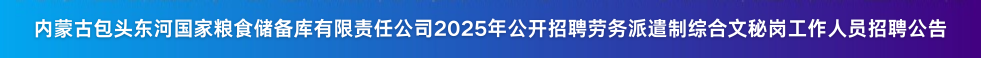 >> 内蒙古包头东河国家粮食储备库有限责任公司2025年公开招聘劳务派遣制综合文秘岗工作人员招聘公告(2025-12-07)
